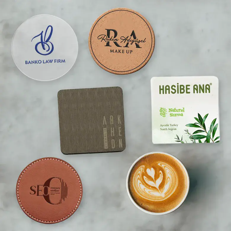 Firmanıza özel logo baskılı bardak altlıkları oldukça şık ve kullanışlı reklam ürünleridir. Etkili bir reklam ürünü olarak müşterilerinize hediye edebilir, ofis ve kurum içi kullanımı ile kurumsal kimliğinizi güçlendirebilirsiniz. Baskılı bardak altlığı farklı malzeme ve baskı seçenekleri ile istediğiniz adette üretilebilir. Özel ölçü üretim için bize ulaşabilirsiniz.