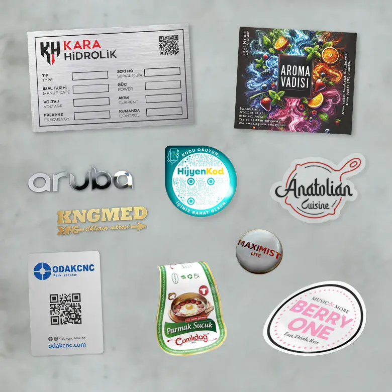 Hemen her sektörde yaygın kullanım alanı olan etiketlerin kullanım amacına yönelik birçok üretim çeşidi bulunmaktadır. Firmamız; ambalaj etiketleri, ürün etiketleri, markalama etiketleri, kargo etiketleri ve makine etiketleri üretiminde uzmanlaşmıştır. Etiket tasarımı ve üretiminde bizden profesyonel destek alabilirsiniz.